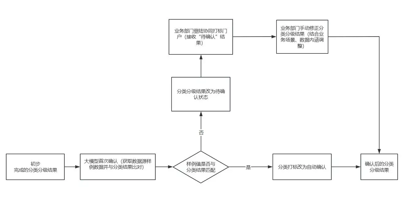 秦皇岛银行AI+数据分类分级项目是以数据为核心,面向全行数据进行AI自动化数据分类分级。通过梳理并标识数据,实现在复杂环境下自动化扫描客户数据并识别其包含的相关业务信息,并借助AI大模型实现自动化分类分级,实现对业务的零打扰。针对结构化数据,可基于库表字段命名、数据特征等进行灵活打标,直接生成表级、字段级分类分级结果。通过接入本地化部署通义千问大模型,能够进一步突破传统规则的局限,基于智能引擎的深度学习,理解字段语义与数据关系,动态优化分类策略,使识别准确率提升到90%以上。
