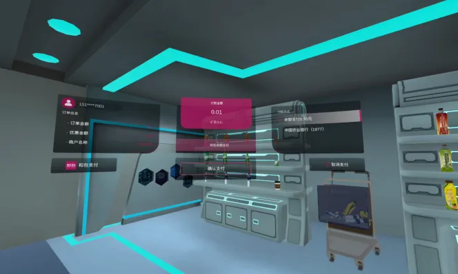 用户在元宇宙商超场景中实现虚拟货架展示、商品3D交互与支付闭环。通过手势识别完成商品抓取、商品查看,结算时调用元宇宙支付收银台。