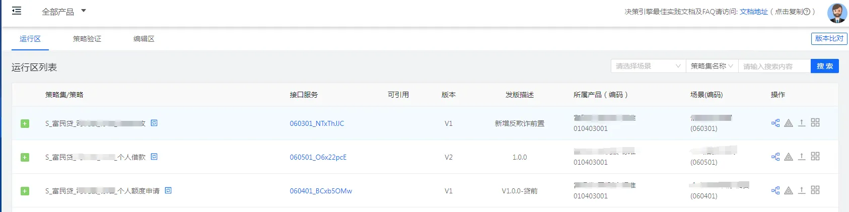 平台基于决策引擎能力,建立 编辑区(开发)、验证区(测试)、运行区(生产) 三区物理/逻辑隔离机制,结合规则库管理、变更计划、变更包、灰度验证、一键发布审核等模块,形成端到端的策略运营闭环,确保策略在不同阶段的安全流转与高效协同。