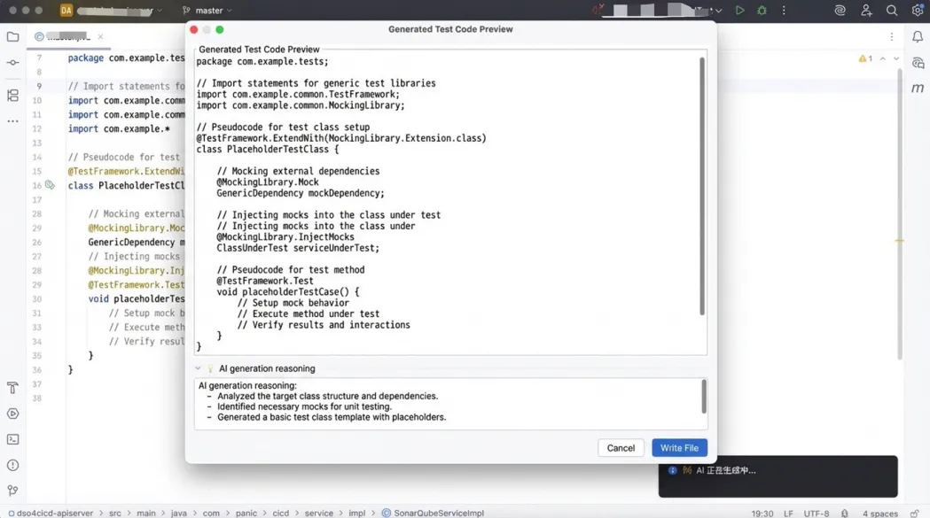 为了确保生成的测试代码不仅 “可编译” 而且 “有效”,本方案构建了严密的闭环反馈(Closed-loop Feedback)机制。通过 IDE 插件与 CI/CD 流水线的无缝联动,系统能够自动捕获本地运行的编译错误、断言失败及覆盖率不足等信息,并将这些反馈回灌至 Prompt 模板中进行迭代修复,直至达到预设的质量标准。这种 “生成—验证—优化” 的自动化闭环,极大地降低了人工干预成本,显著提升了测试代码的平均行覆盖率与异常用例命中率。
