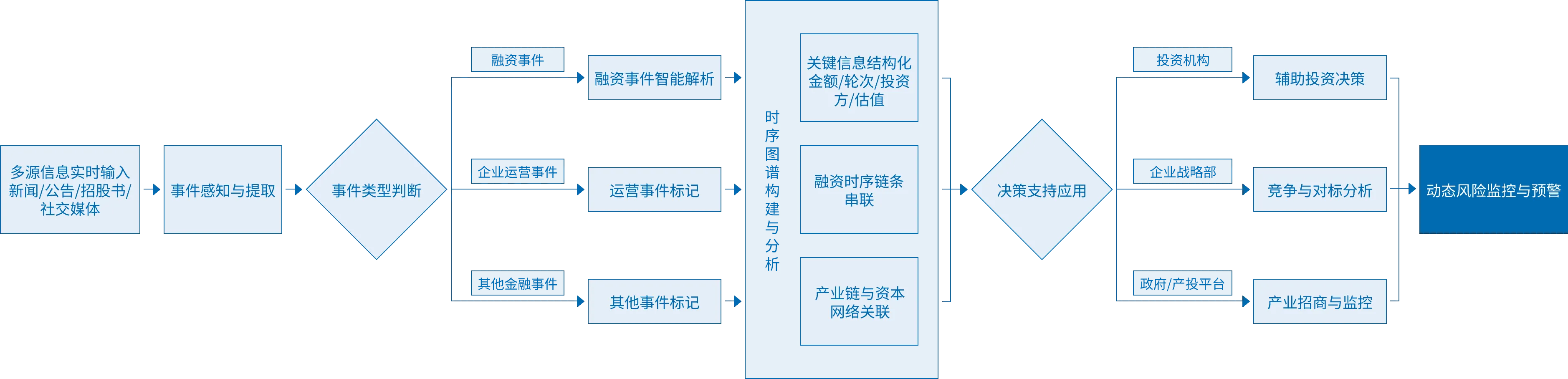 事件扩展:从“融资事件”扩展至“企业运营全生命周期事件”(如新品发布、高管变动、战略合作、风险诉讼等),构建更立体的企业动态知识图谱。