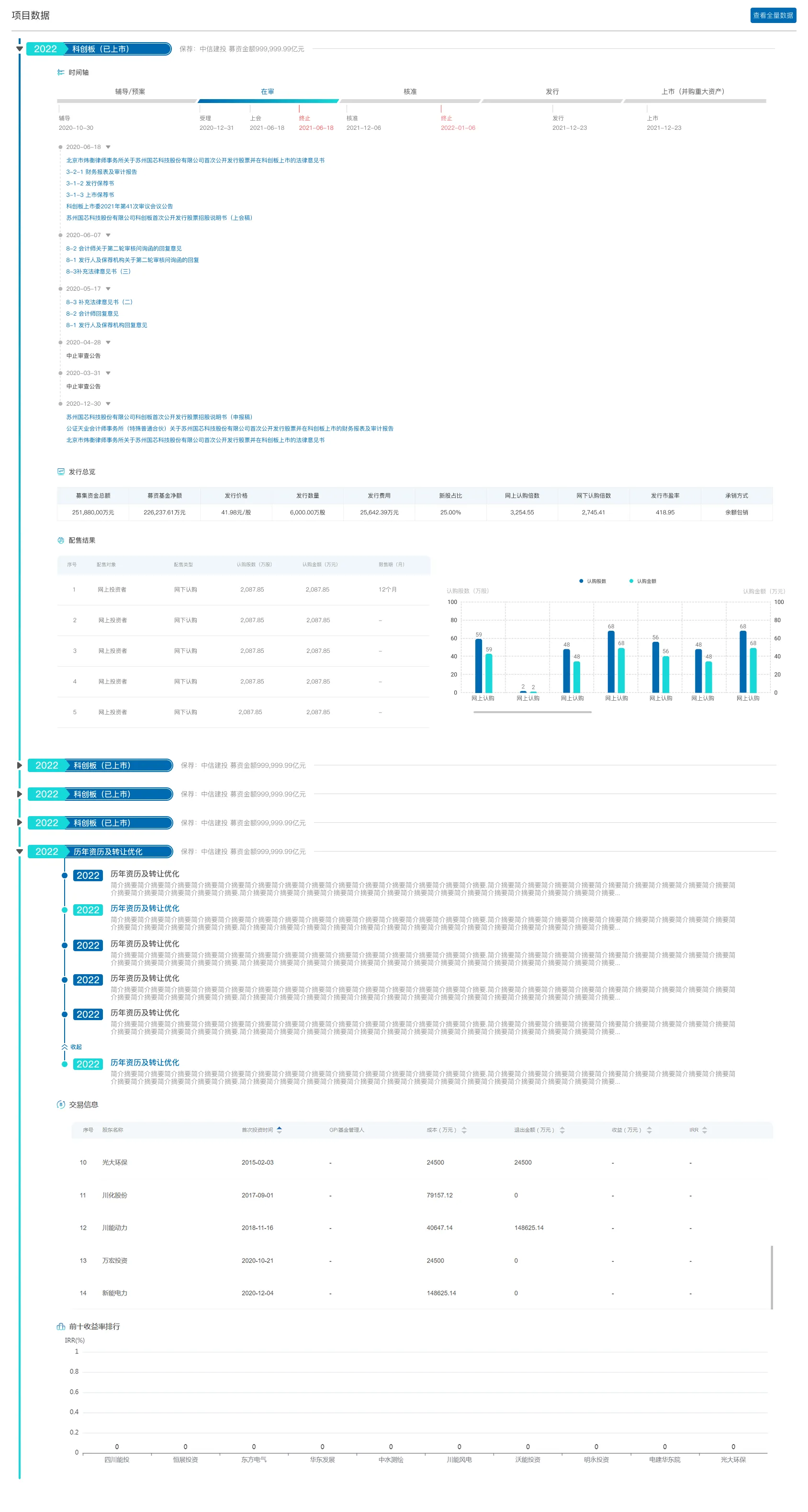 融资时序图谱:可视化展示任一企业的完整融资历程图,包括历次融资节点、参与方、金额及估值变化趋势。