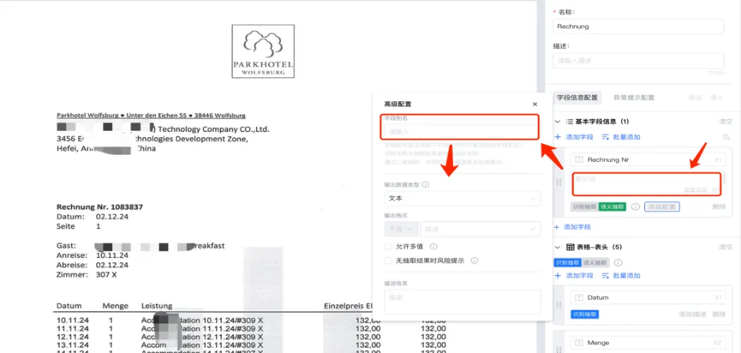 - 通过写提示词描述抽取字段,提升抽取准确率;