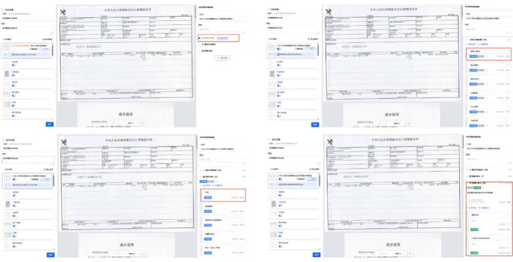 相较于传统分类抽取的模型训练需上百张以上的样本,当前方案通过embding向量化技术,单场景上传少量(10张左右)样本/分类关键字设置,无需标注训练,即可实现文档自动分类;对于复杂字段的抽取,借助多模态的语义理解能力,提供prompt和规则配置,在少量样本(10张左右)下仍能实现比较准确的抽取效果。