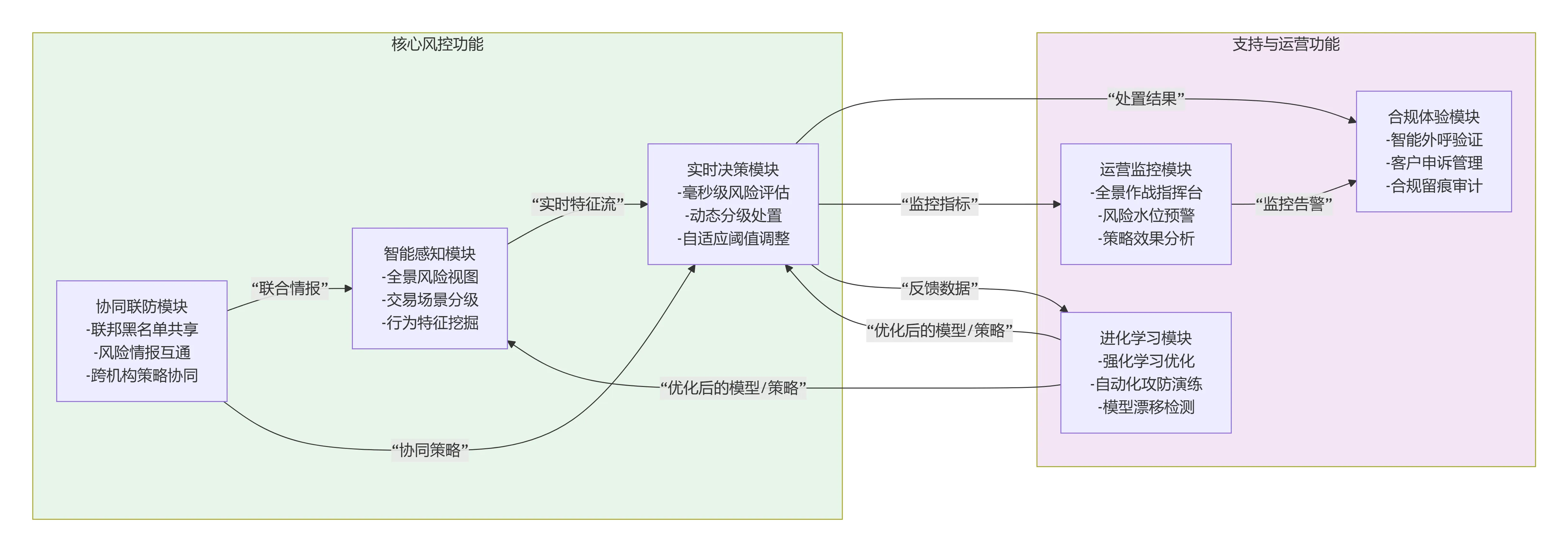 “华盾智御”方案构建了一个全链路、智能化的风控功能矩阵,其核心能力可概括为以下五个层面: