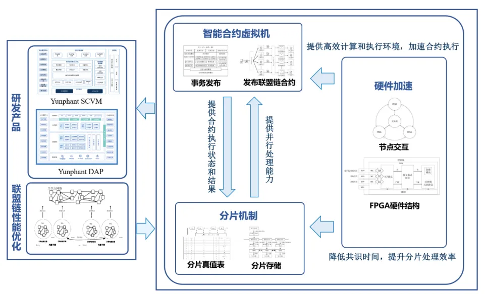 2. 针对性能不足问题:借助智能合约虚拟机软硬件并行架构、硬件加速、负载均衡等技术,大幅提升联盟链的并发处理能力和扩展能力;