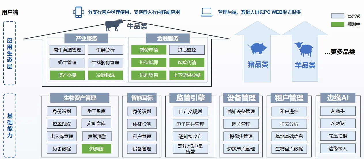 产业延伸规划:打通养殖、流通、金融等产业链环节,构建全链条数字化金融服务体系。逐步覆盖高价值特种养殖领域,最终形成“技术+场景+服务”的产业生态圈,助力乡村生物资产的价值激活与产业升级。