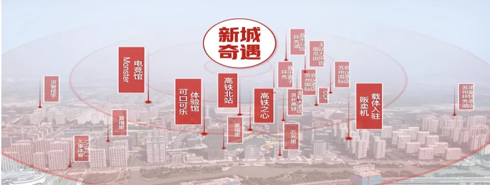 (图2新城奇遇场景示意图。展示苏州相城高铁新城内可口可乐博物馆、环秀音乐盒子等全场景数字化覆盖实景)