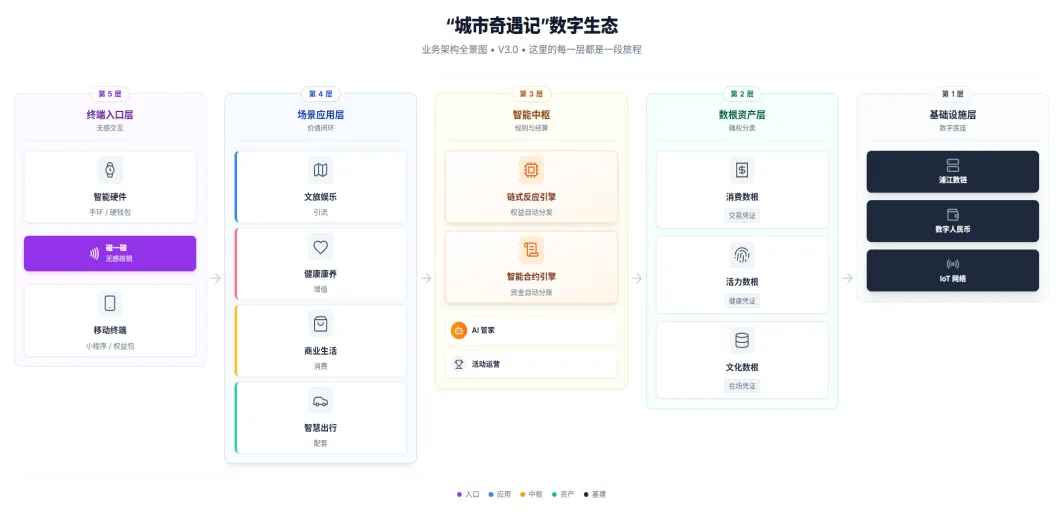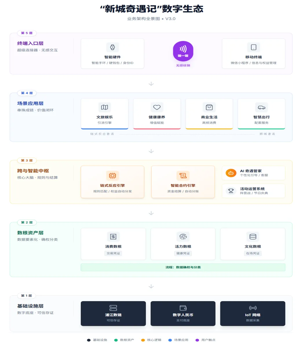 ·服务数智化升级:构建“身份-行为-存证-权益”体系。结合数字人民币硬钱包碰一碰等交互方式,对用户到场、互动等行为脱敏上链,实现“行为即资产”。