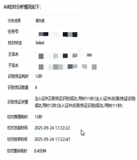 成功案例:2025年9月20日,系统上线次日,晋商银行小店支行通过AI流程成功开立全行首笔对公账户,标志着AI智能审单正式投入业务运营。截至2025年10月13日,系统已完成全行推广并稳定运行。